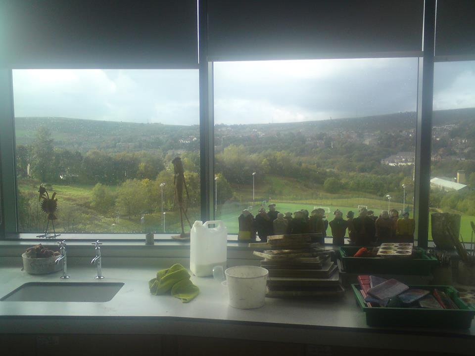 wire weary factory worker- This is a clay and wire figure inspired by local artist Lowry, I decided to teach the class about Lowry as his art is a great way to understand about the industrial background of the North of England, especially Manchester/ Lancashire area where their are still a lot of disused mills and converted mills … i photographed this image in the art room i taught in , the silhouette character was created by one of my 14 year old students.
